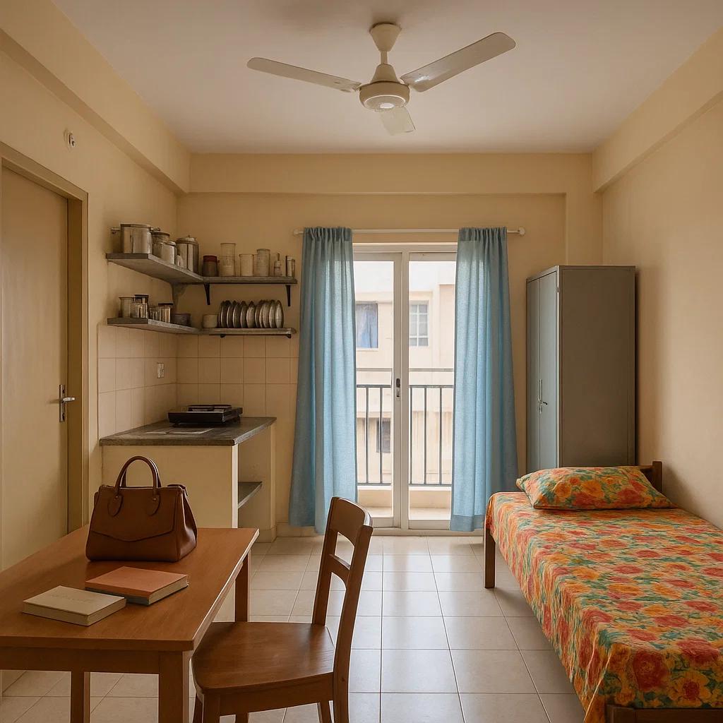 I step back into my room, the smell of chai still clinging softly to my clothes. The sunlight has fully claimed the space now, stretching lazily across the bed and pooling at my feet. I glance around the neatly tucked bed, the curtain swaying faintly, the wardrobe standing firm in its corner.