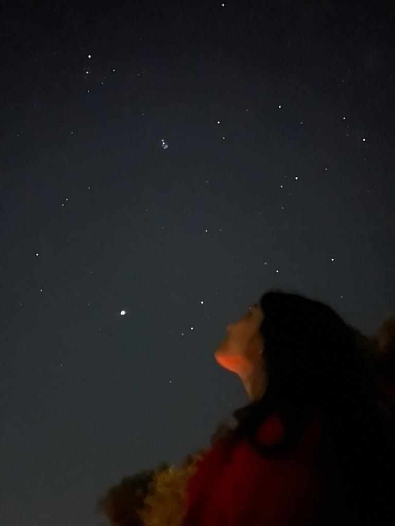 She closes her eyes. Breathes in the night air, it's calm and beautiful.