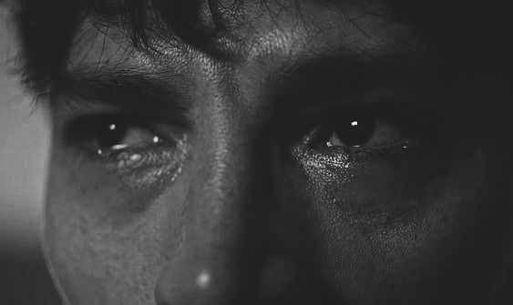 It's not loud crying, it's quiet, desperate, the kind that steals your breath. Every inhale catches, every exhale shudders, like her body is trying to hold itself together but failing with every beat of her heart.